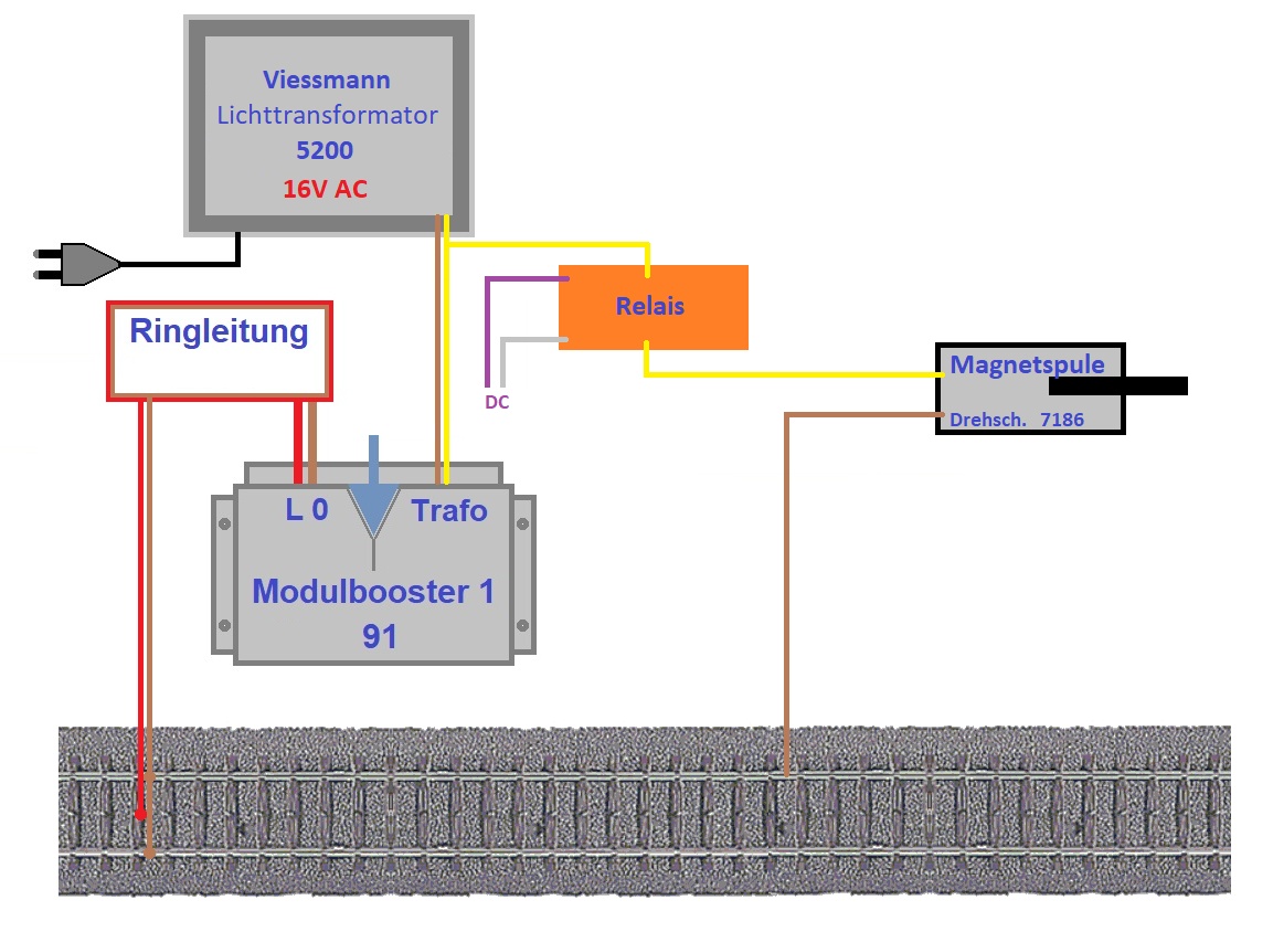 Ich frage jetzt mal konkret: Kann ich für die Magnetspule "gelb" vom Viessmann 5200 Lichttransformator nehmen, der den zuständigen Booster speist und braun an das Gleis des gleichen Boosters anschließen?