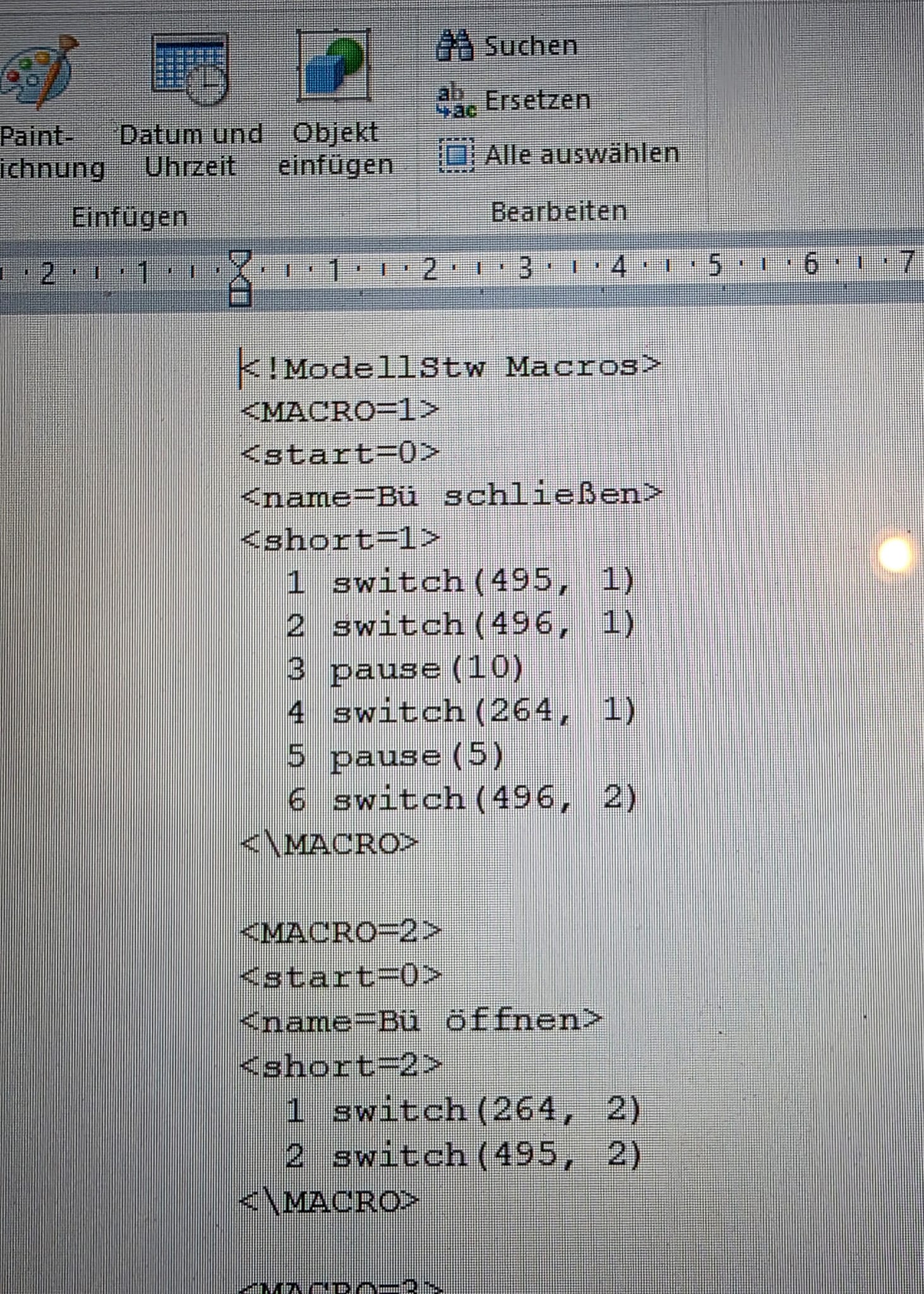 ich habe seit heute ein kleines Problem mit Makros. Nachdem eigentlich alles bereits schonmal einwandfrei funktioniert hatte, musste ich zur Ansteuerung meines Bahnübergangs (Bü) die Adressen ändern. Dies habe ich in den Makros die für das Öffnen und Schließen des Bü zuständig sind gemacht.