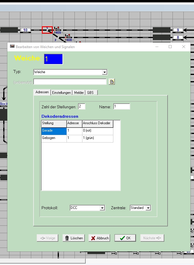 Da vermute ich auch, das du mit Weiche 1 - 4 in der Konfiguration besser liegst. Die Adresse sollte da keine Rolle spielen.